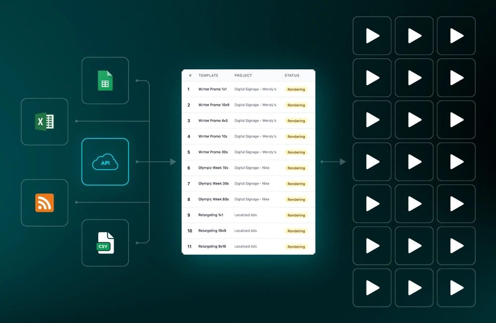 Keep your creative team sane - eliminate manual work and automatically create as many video variations as you need.