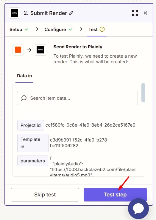 If successful, you’ll be able to see the test render in your Plainly account.